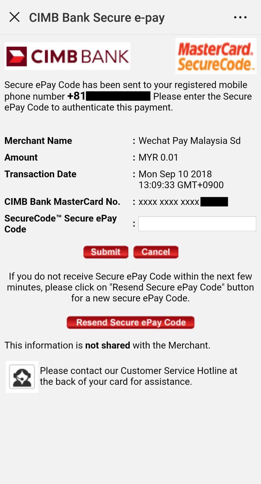 sms認証を受けてデビットカードの登録が無事終われば、WeChat Pay MYの有効化は完了。