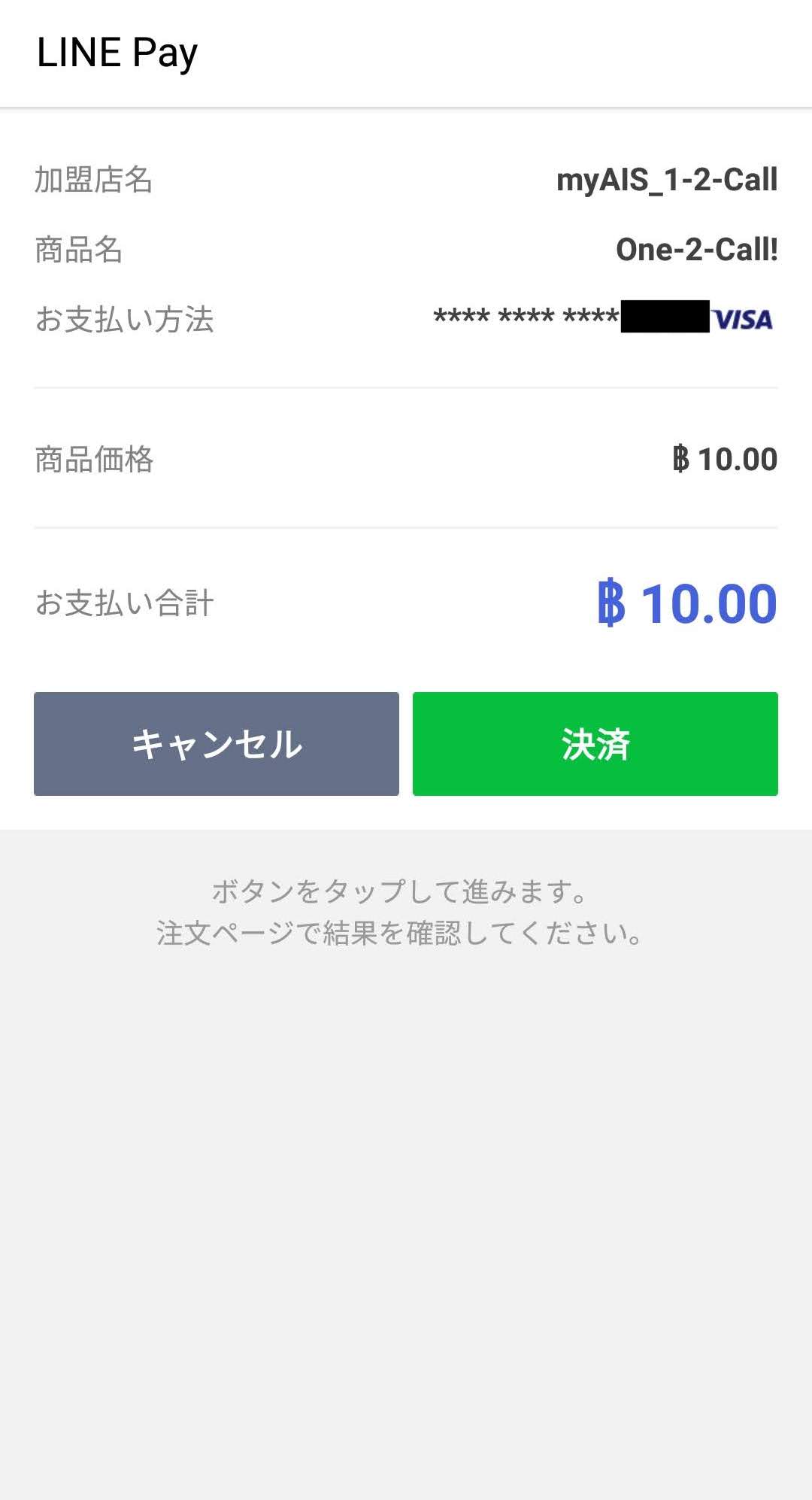 LINE Payを使ったトップアップは40バーツまでしか出来ないといった旨の情報があるようですが、個人的に試してみたところ問題なく200バーツでもトップアップできました。