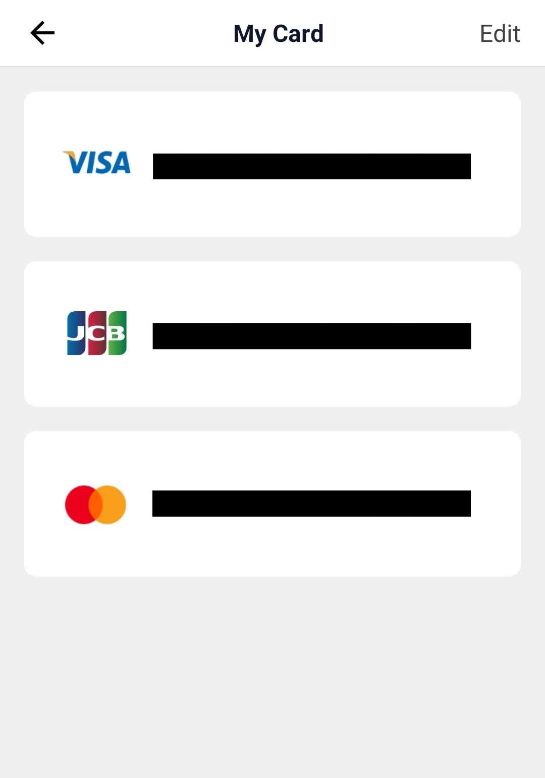 クレジットカードはVisa/Master/JCBに対応しており、日本のカードも登録可能。