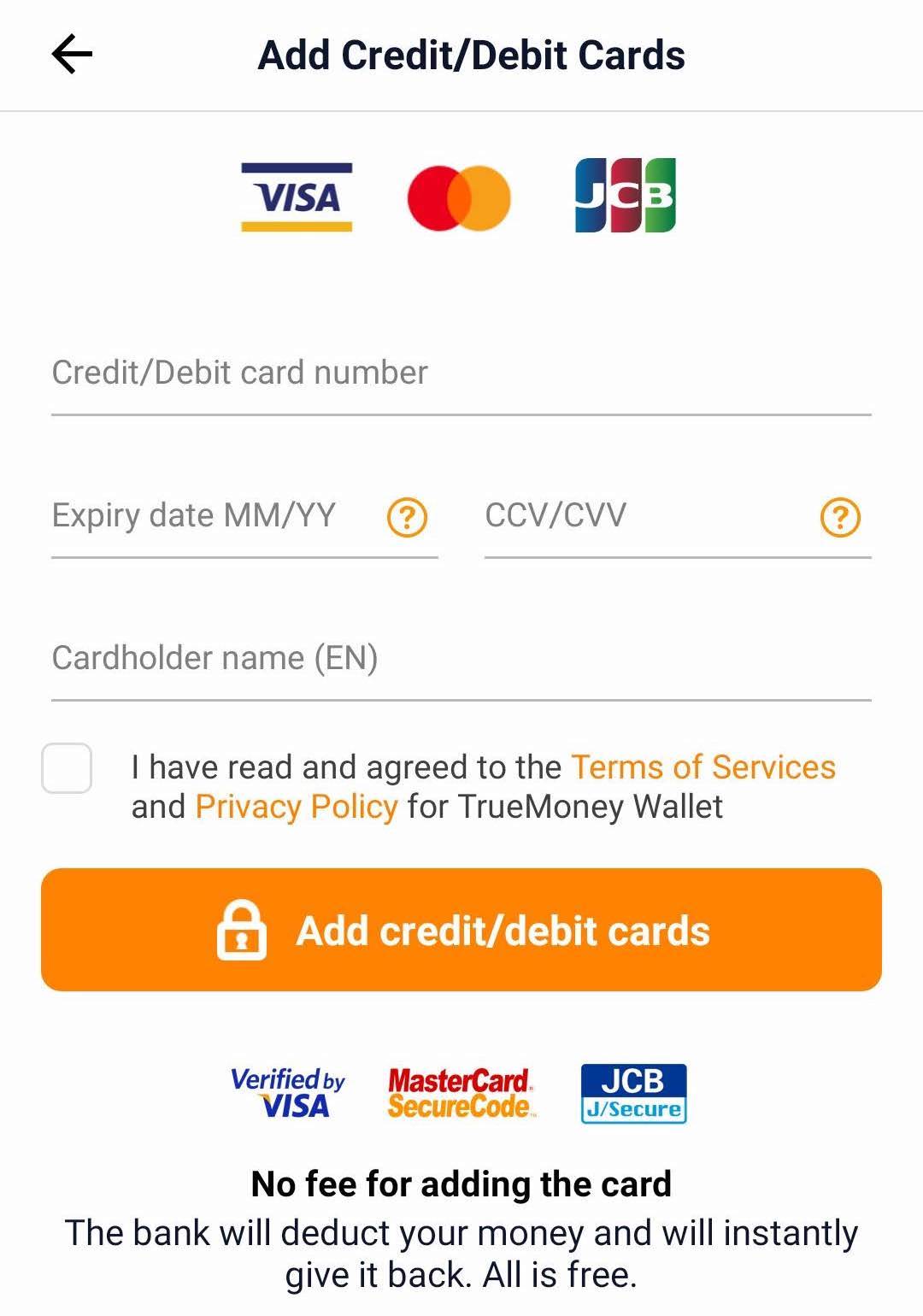 アプリにクレジットカードを紐付け、そのまま決済することができるので、旅行者であってもTrueMoney Walletのアカウントを作り、そこに日本のカードを登録してしまえばよい。