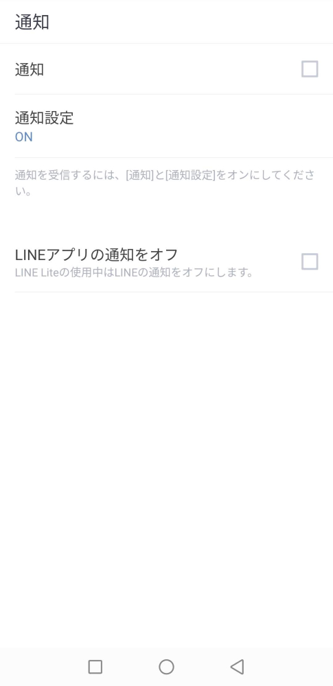 また初期設定だとLINE Liteには通知が来ないようになっているため、必要に応じて設定画面から変更を行う。