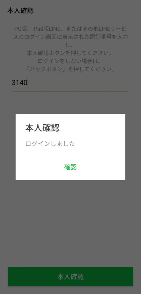 ログインをしたら認証番号の入力が求められる。サブ端末のLINE Liteに表示される認証番号をメイン端末のLINEに入力する。