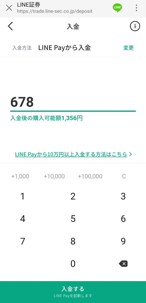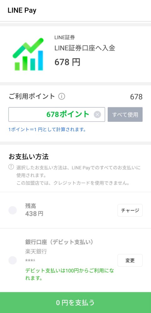 LINE証券への入金は現金以外にLINEポイントを使うことができる。