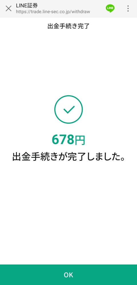 次にLINE証券へ入金したポイントをそのまま出金する。そうするとLINE残高になって戻される。