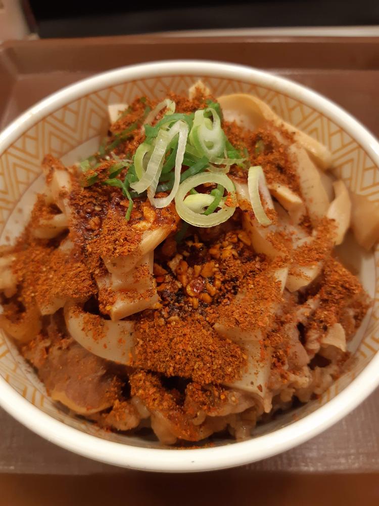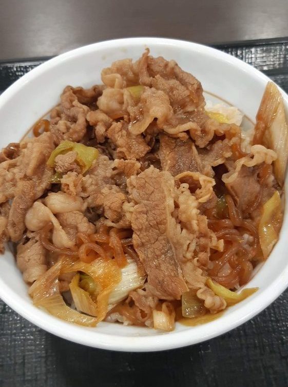 牛丼にしらたきが入っているのが特徴。