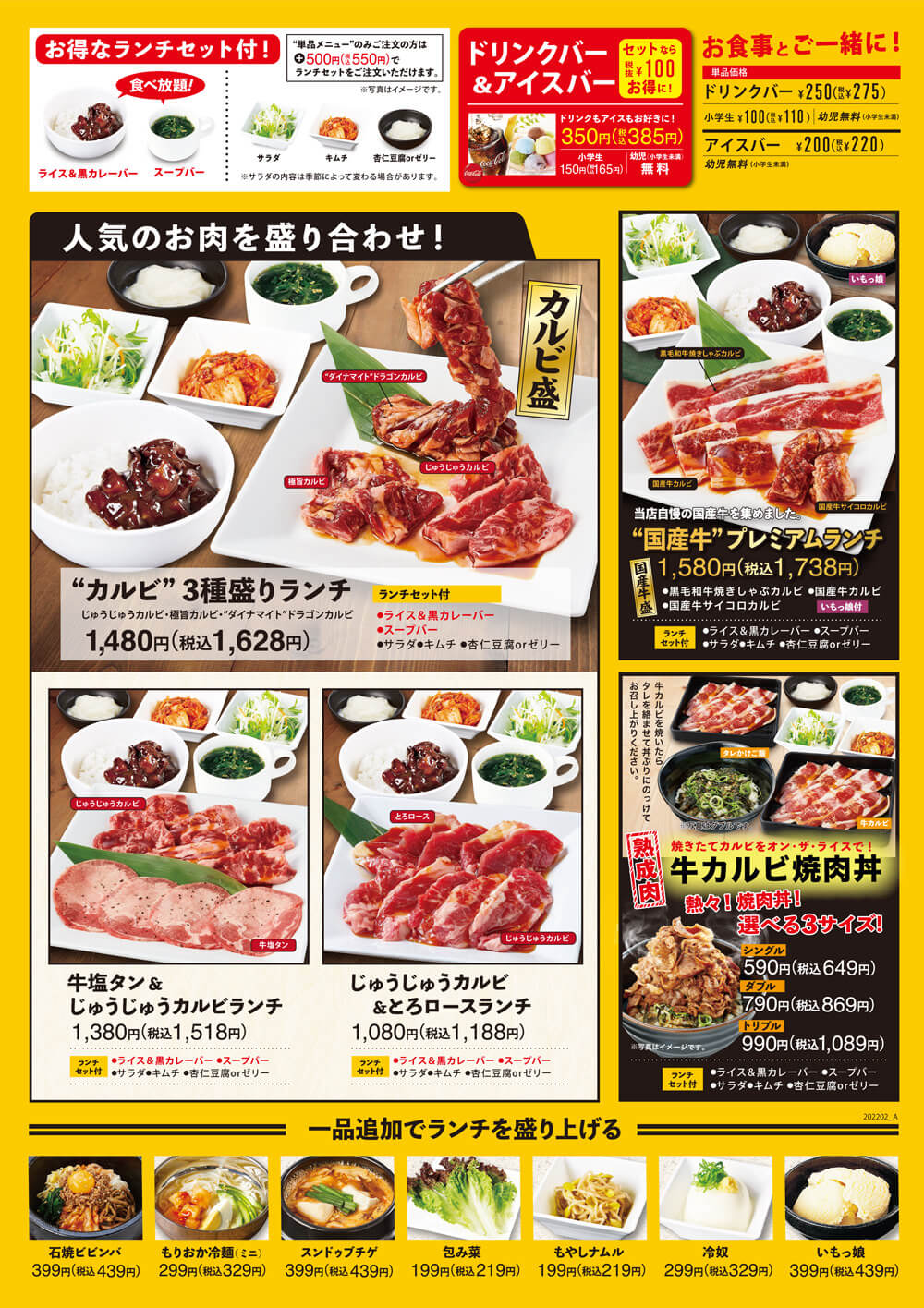 じゅうじゅうカルビのメニューは食べ放題がメインだが、ランチセットも提供している。