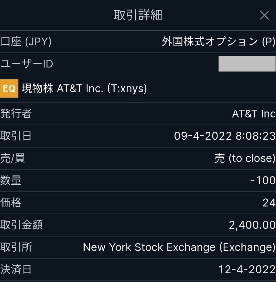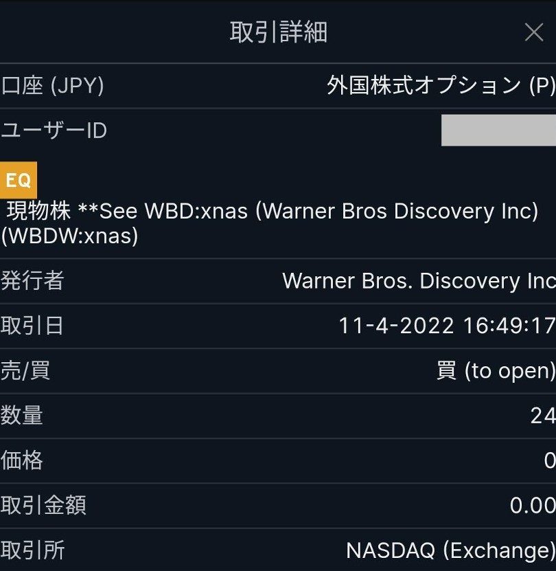 これは4月8日満期のTコールオプションを売建て、オプション保有者の権利行使に伴いT株は自動売却となったものの、スピンオフ権利確定日時点では株保有という扱いになるため、WBD株も追加で貰えたという状況。