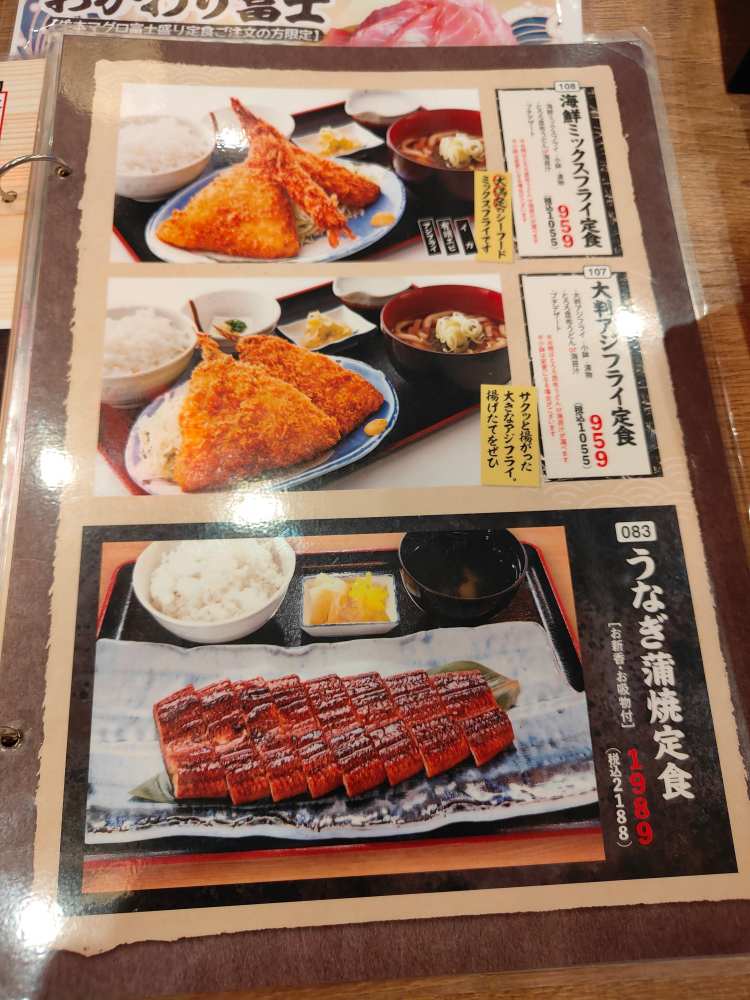 また焼き魚定食やフライ定食などボリュームのあるメニューも1,000円ちょっとで食べられる。ほか、うなぎもランチで提供されている。