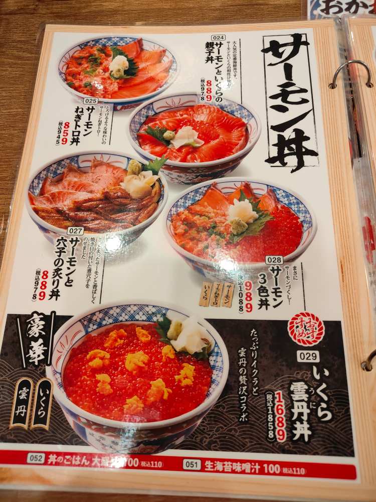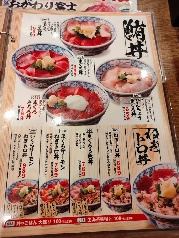 まずは海鮮丼。値段はマグロ丼が725円(税込)〜となっている。