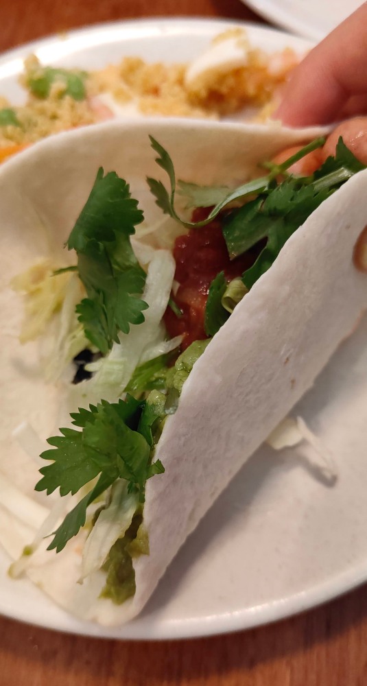 また珍しいメニューとしてタコスがあり、自分で選んだサラダを生地に乗せてオリジナルタコスを作ることができる。